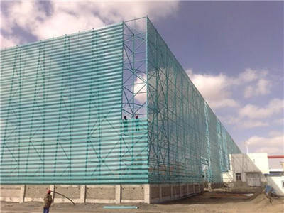 (3彩涂防风抑尘网安装:使用寿命15~20年。使用环境温度:-40℃至+80℃,连接采用螺钉和压板固定。挡风抑尘扳的具体尺寸、弯曲度、开孔率应根据堆场的实际情况进行设计。